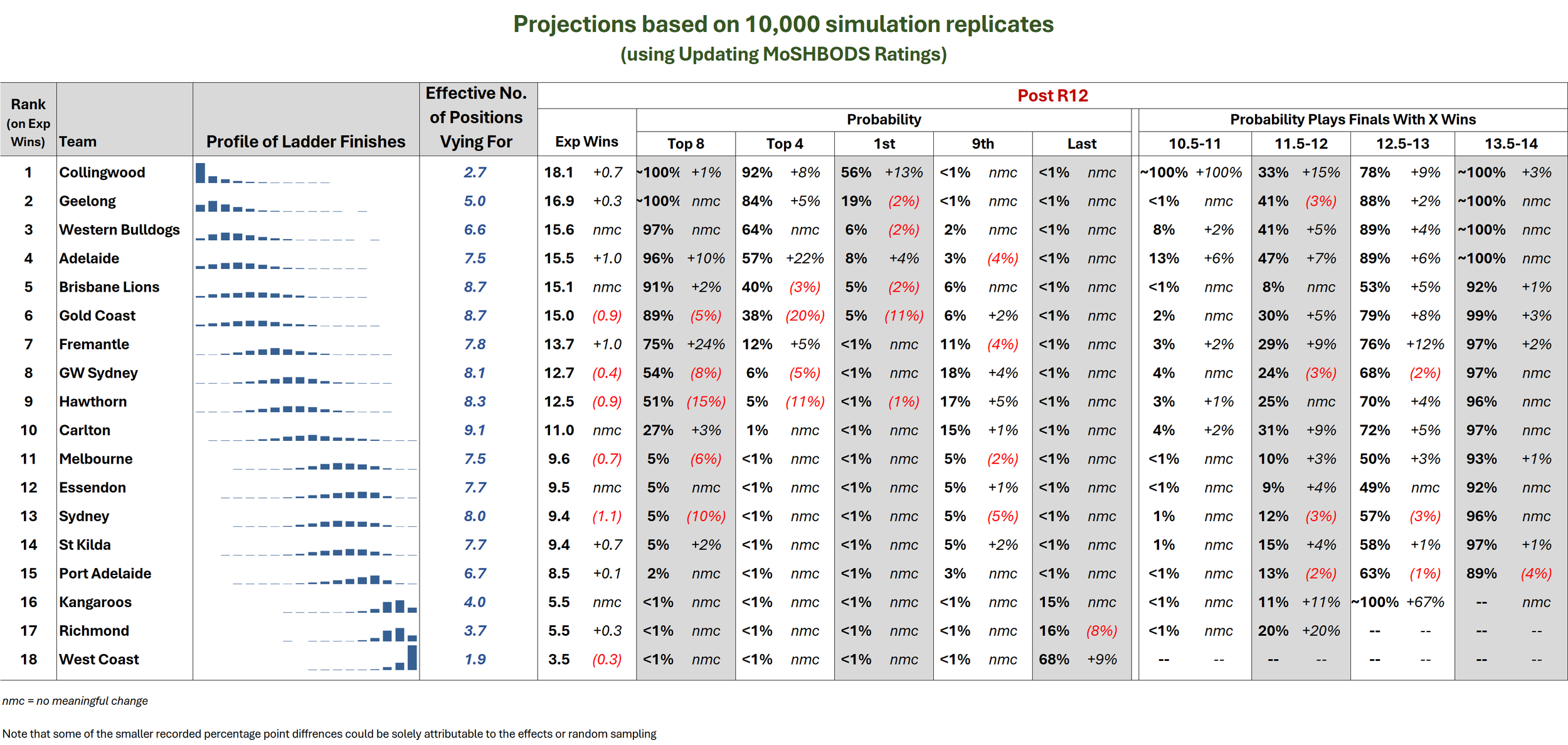 /This year’s post Round 12 simulations suggest that the teams can be roughly grouped as below: