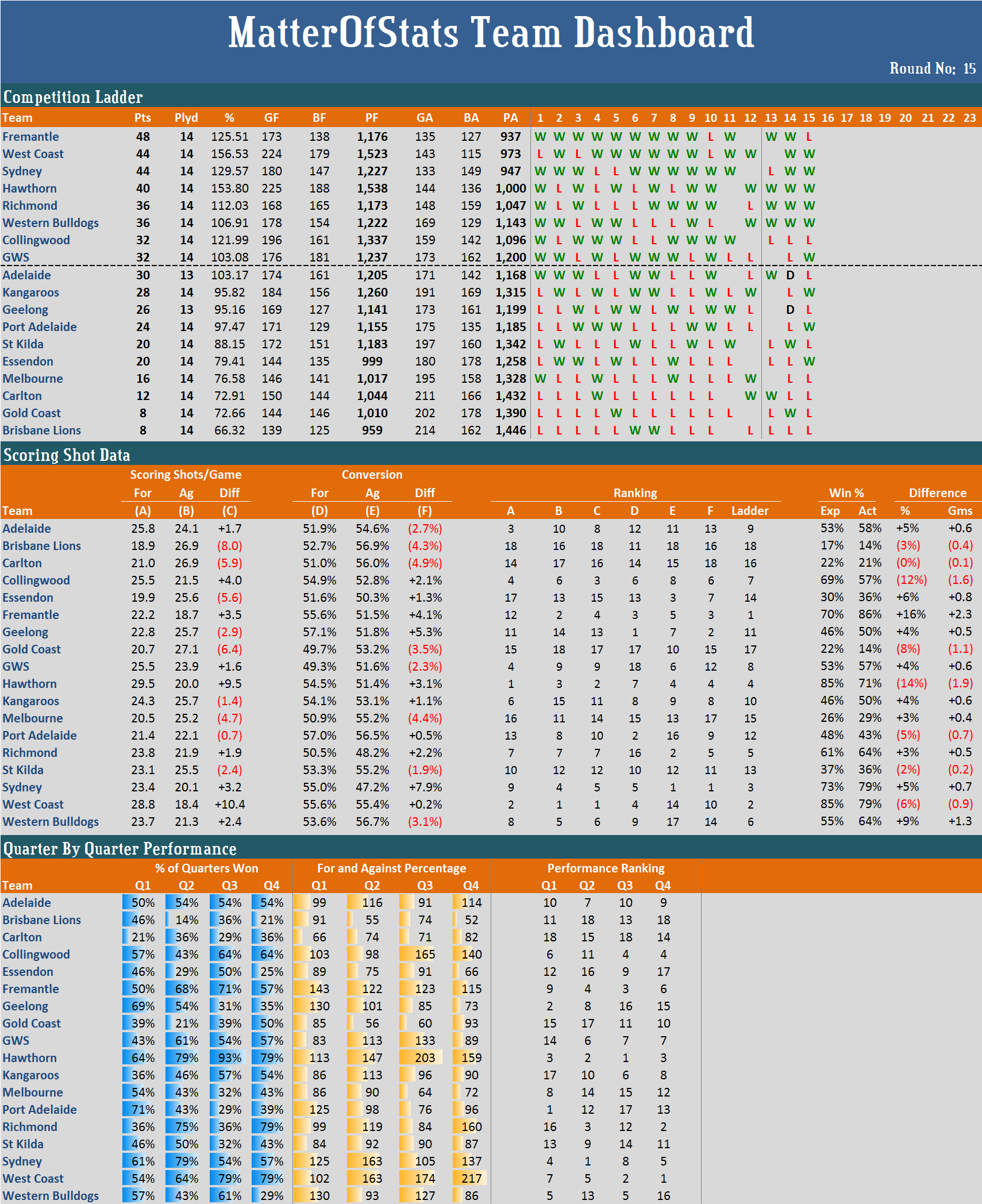 MatterOfStats 2015 : Team Dashboard for Round 15