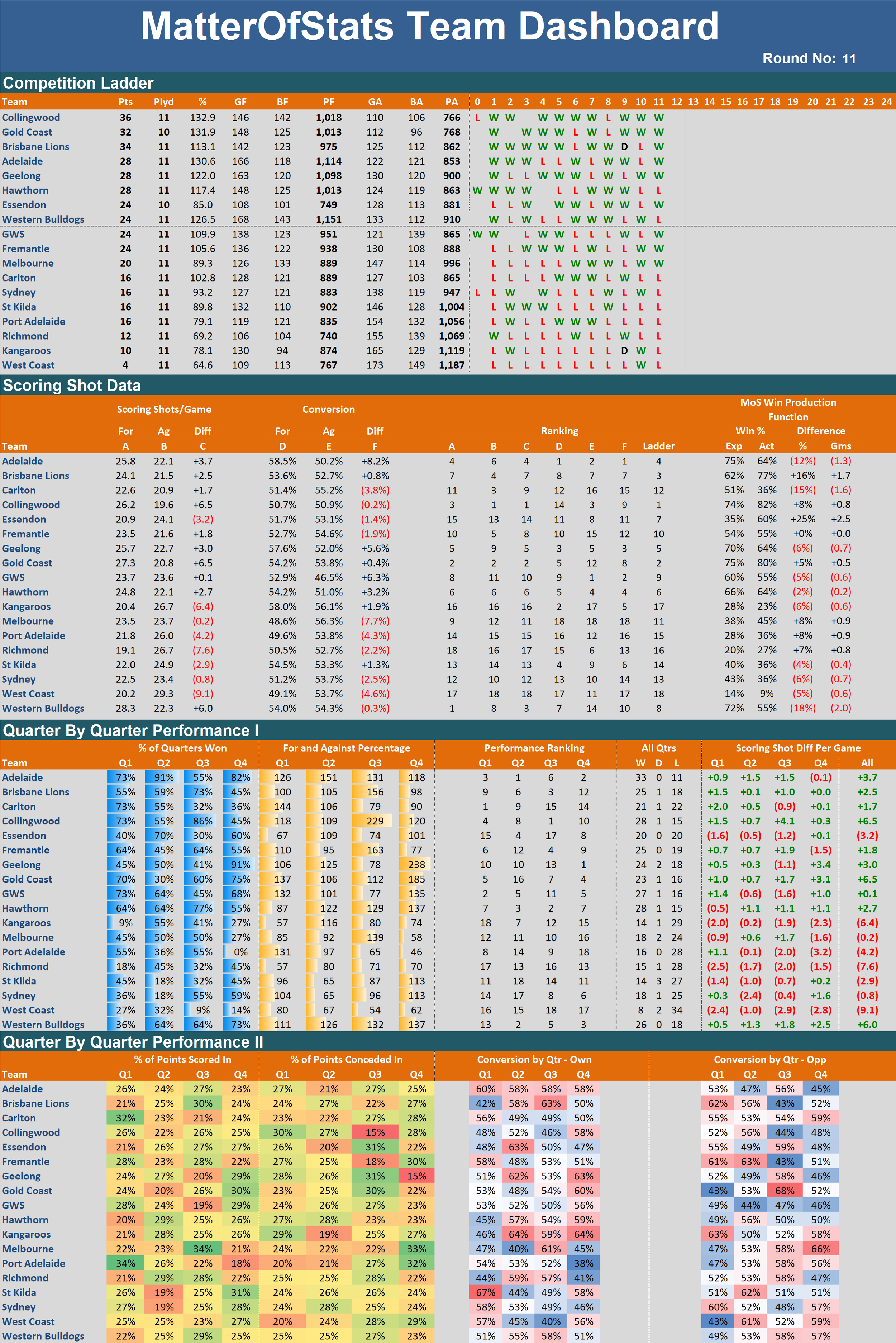 MatterOfStats 2025 : Team Dashboard for Round 11
