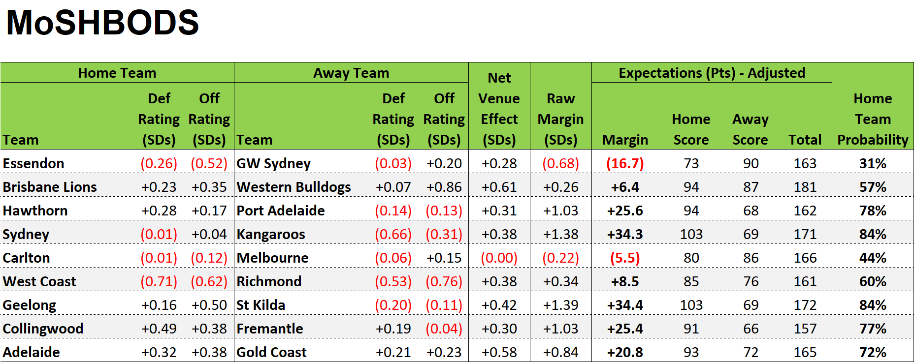 That would seem to limit the opportunities for contrarian head-to-head tipping, but let’s see what we have from the models.
