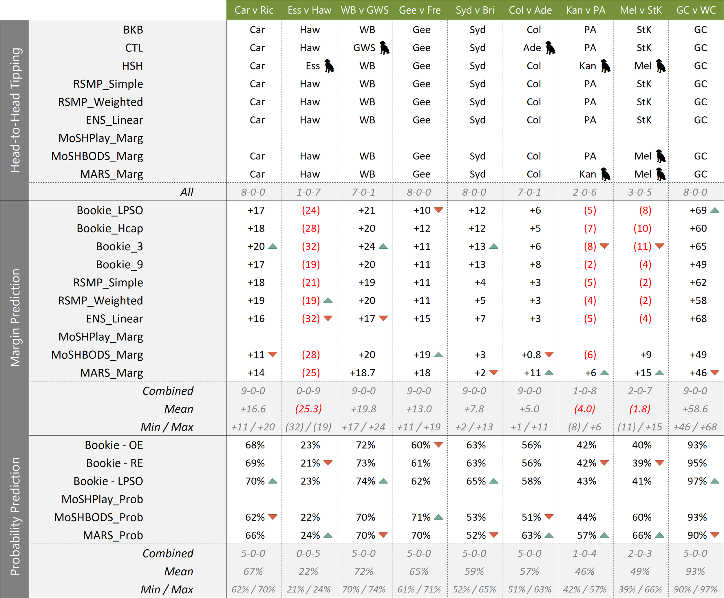 MARS_Marg and Bookie_3 are Extreme Predictors in five games each this week, and MoSHBODS_Marg in three games.
