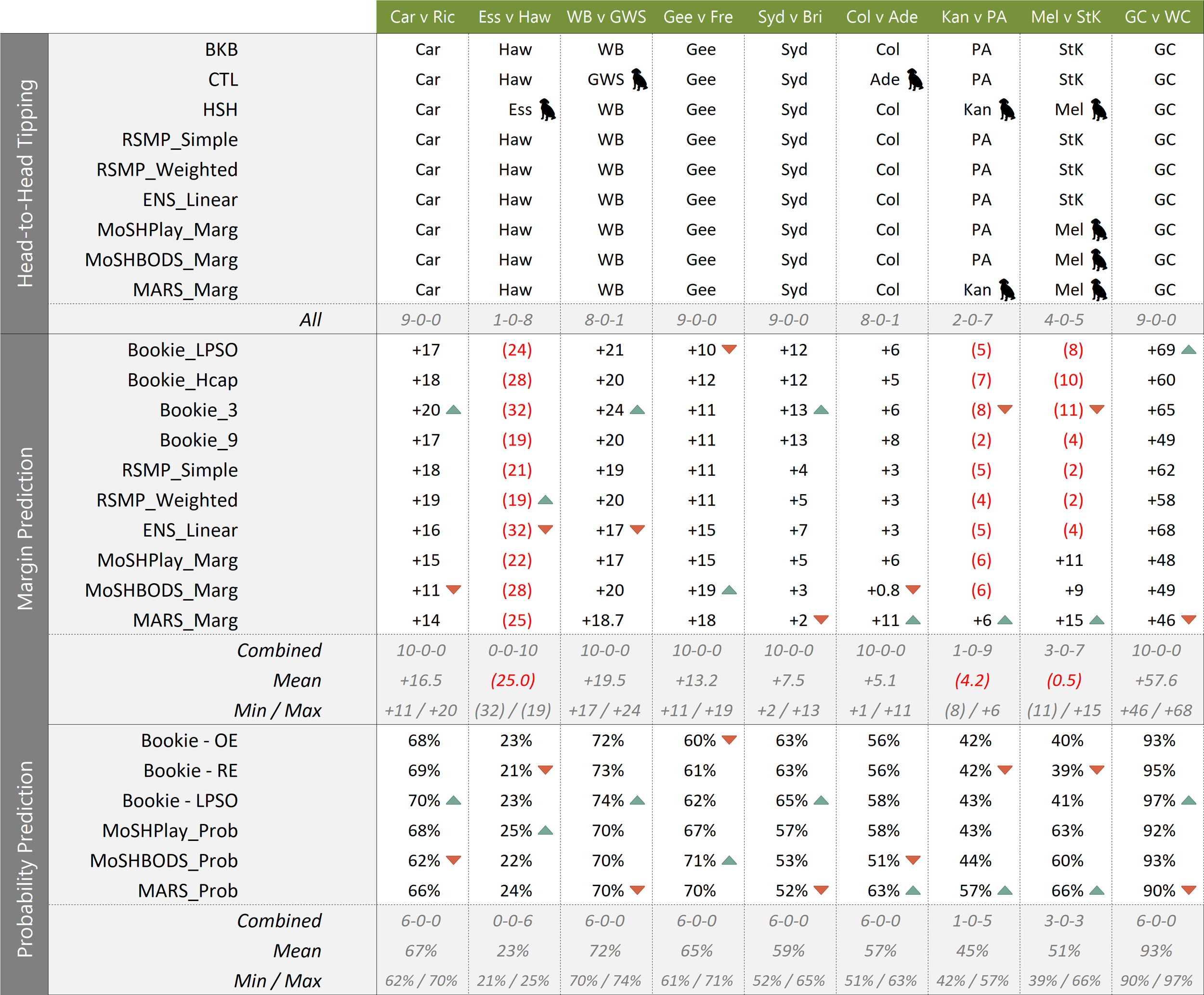 MoSHPlay is staying with Carlton by 15 points, and now has some preliminary thoughts about the remaining games in the round.