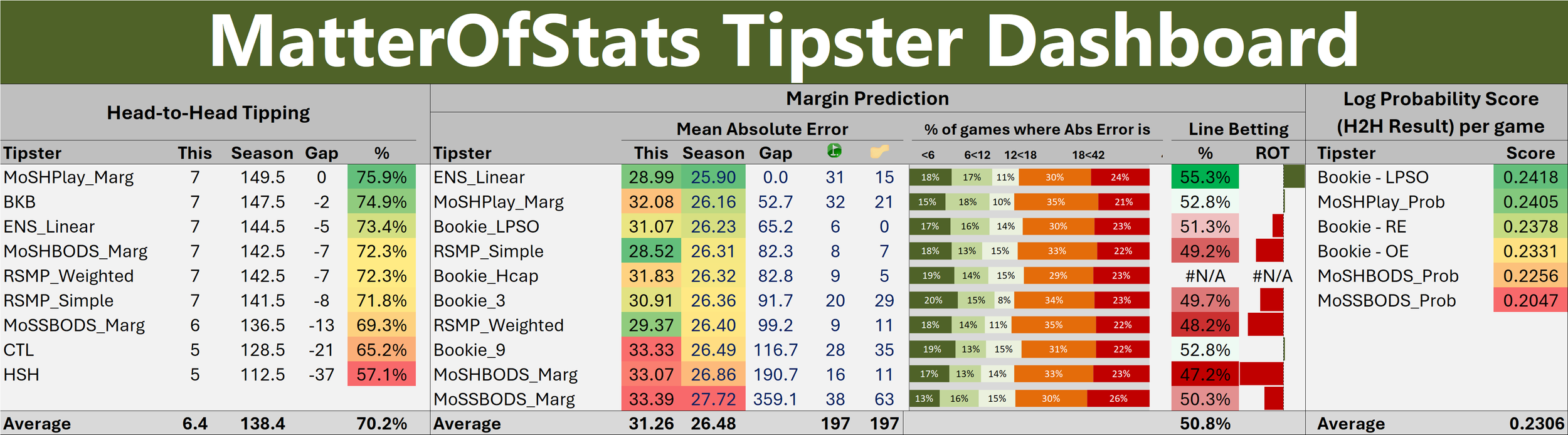 The all-Tipster average score came in at 6.4 from 9, which took the season-long all-Tipster average performance to 138.4 from 197 (70%).