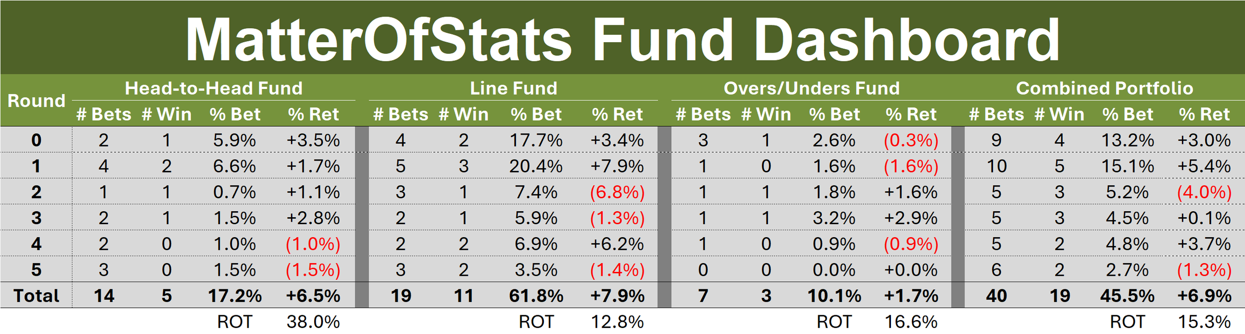 Had West Coast’s final behind been a goal, the sign on the return to the Combined Portfolio would have been different, but that not being the case meant that both the Line and Head-to-Head Funds made losses.